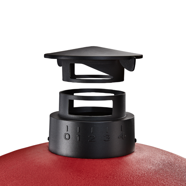 Aluminium top, and stainless-steel bottom vent, both with position indicators to accurately control temperatures.